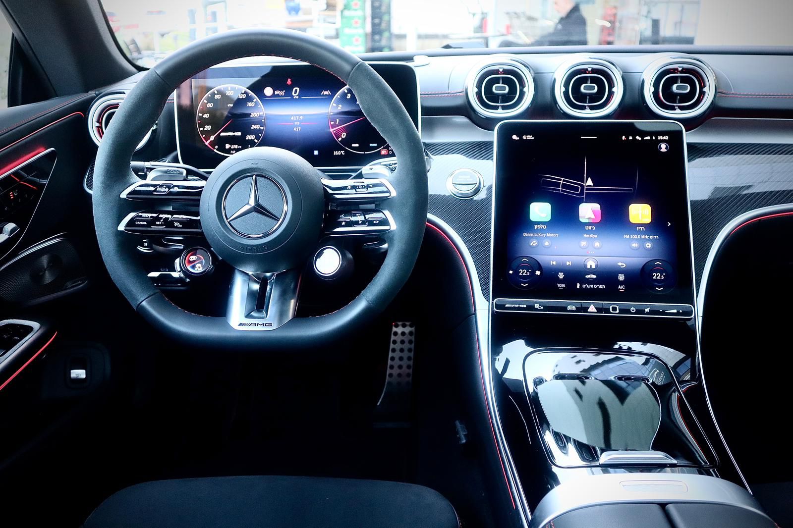 הגה סופר ספורט של AMG מעור משולב אלקנטרה עם כפתורי הפעלה אלקטרונית של האגזוזים,מתלים,דינמיקה מוטורית ועוד
