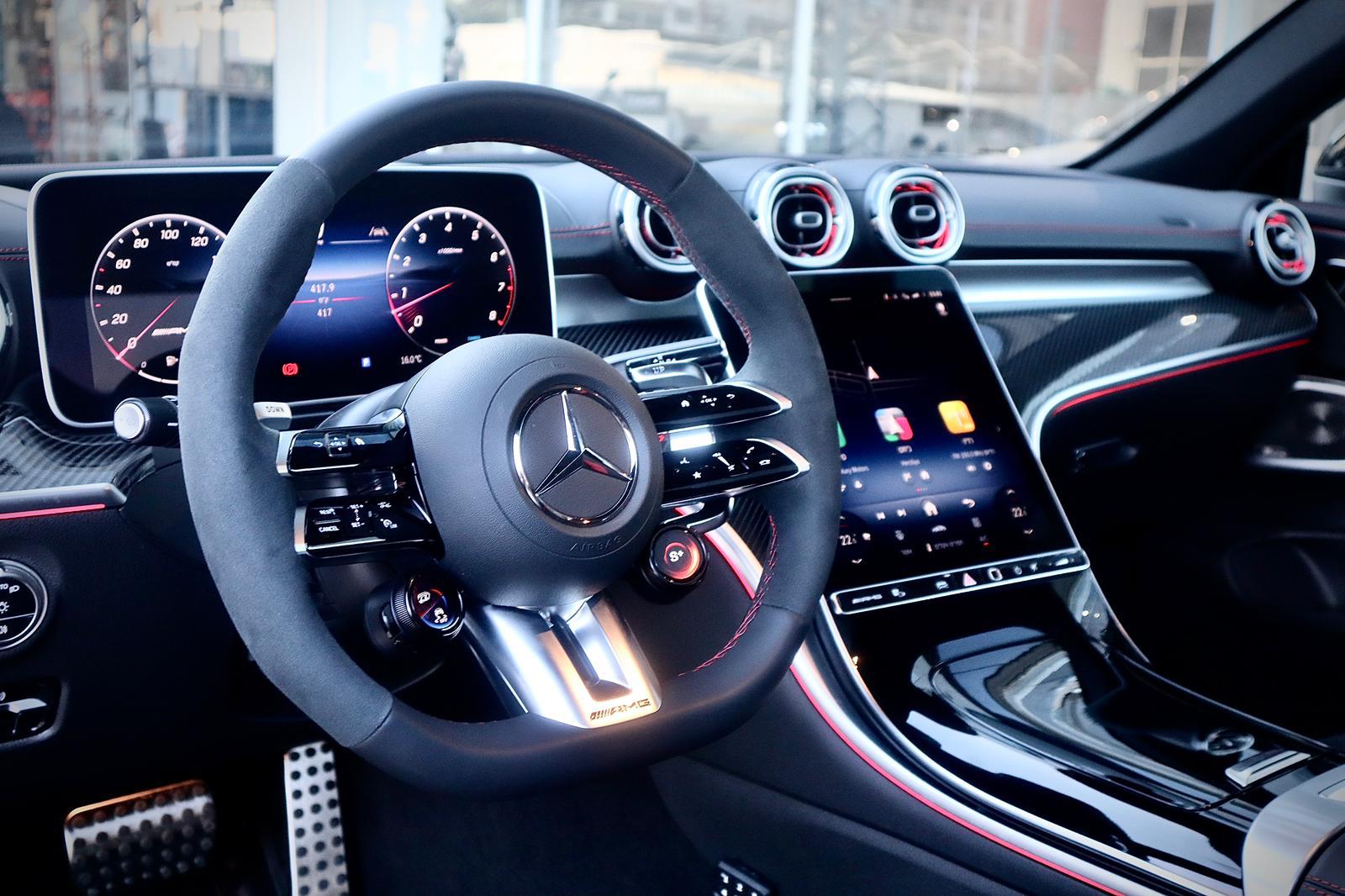 ‏הגה סופר ספורט של AMG מעור משולב אלקנטרה עם כפתורי הפעלה אלקטרונית של האגזוזים,מתלים,דינמיקה מוטורית ועוד