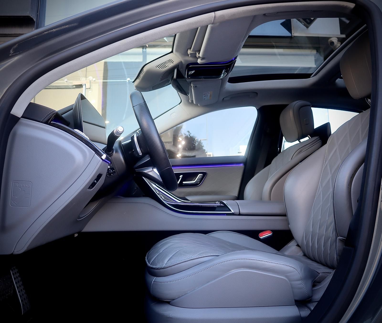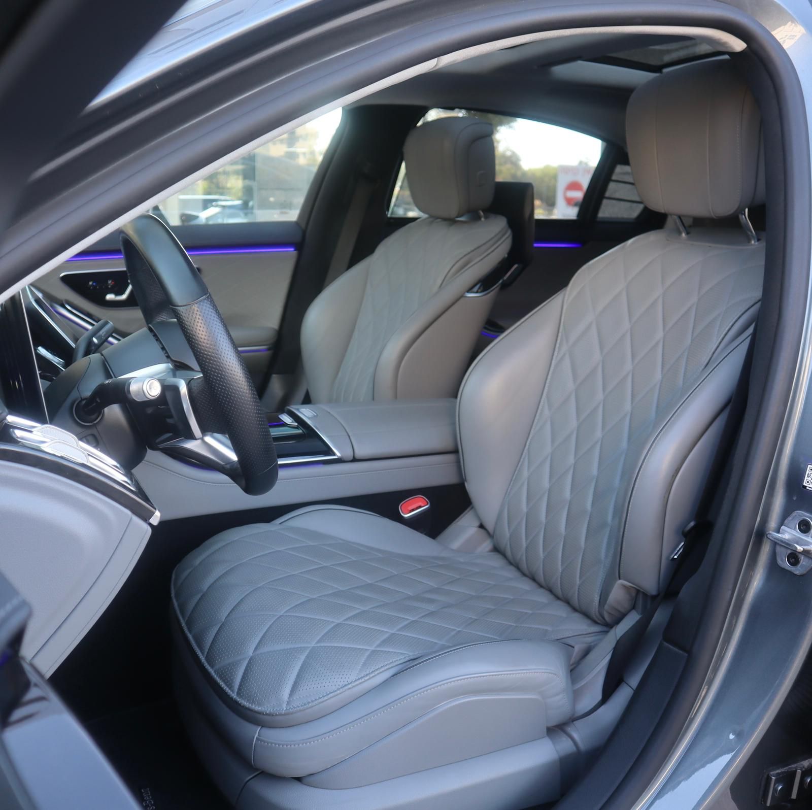 פנים עור נאפה עם תפירת מעויינים בצבע אפור בהיר עם רצפה שחורה,
