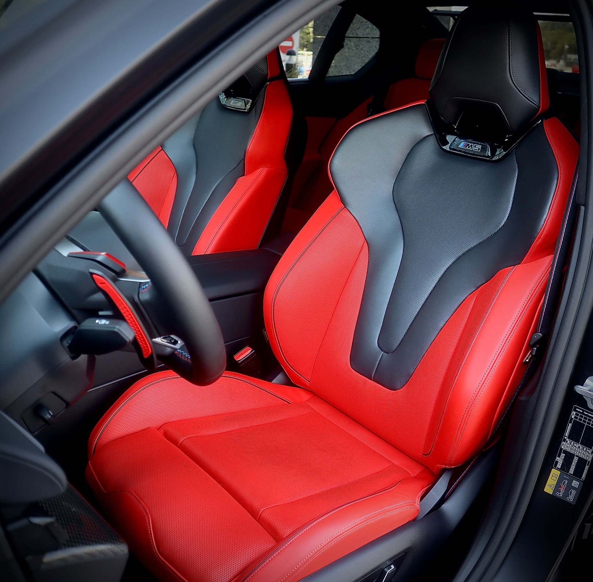 כל פנים הרכב מצופה עור נאפה בצבע שחור משולב אדום מיוחד לדגם