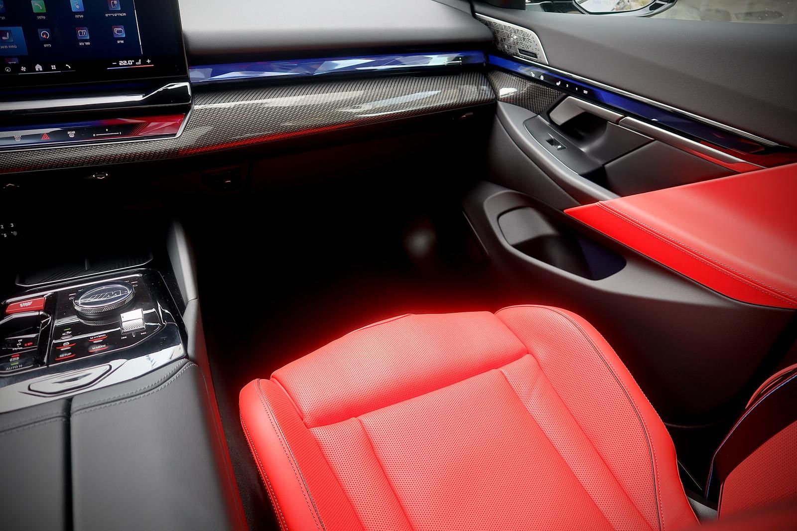 כל פנים הרכב מצופה עור נאפה בצבע שחור משולב אדום מיוחד לדגם