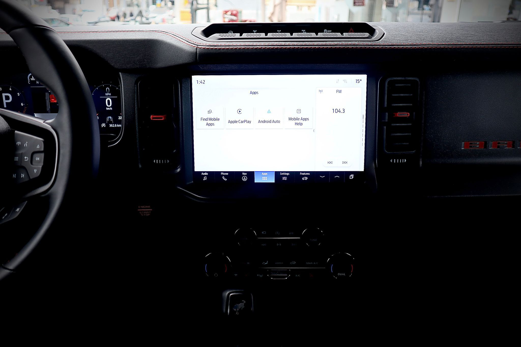 • מסך מולטימדיה 12″ עם SYNC 4, Apple Car Play ו-Android Auto אלחוטיים.
