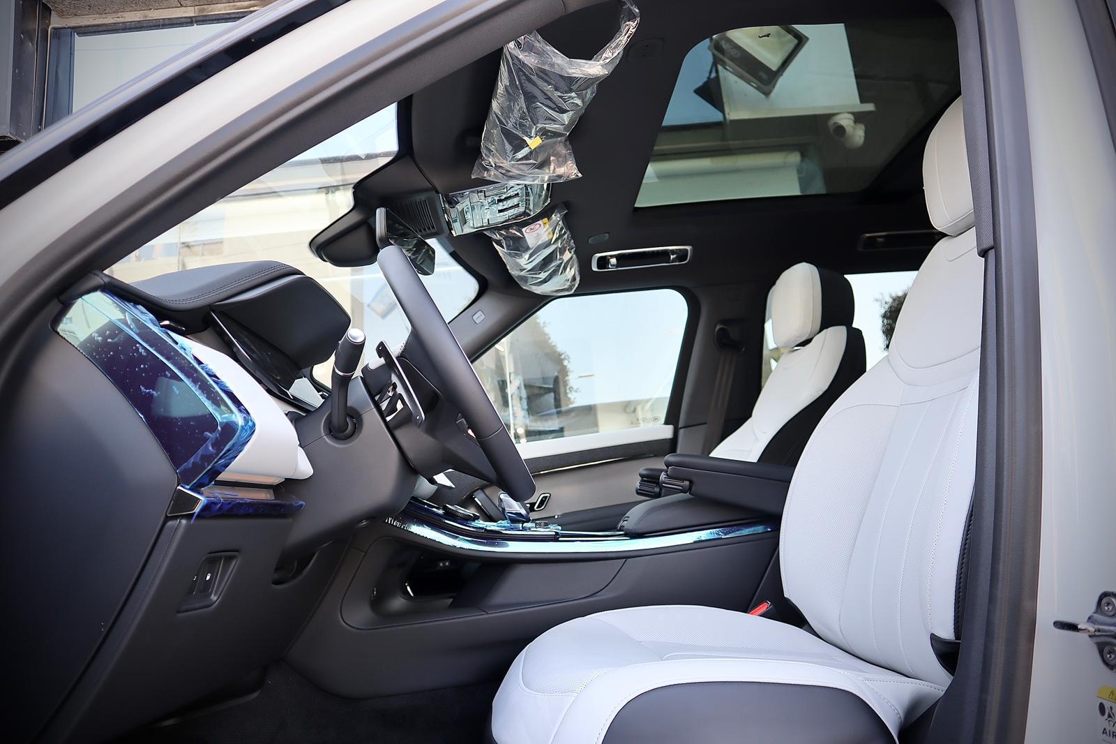 פנים עור נאפה בצבע לבן משולב שחור עם רצפה ותקרה שחורה